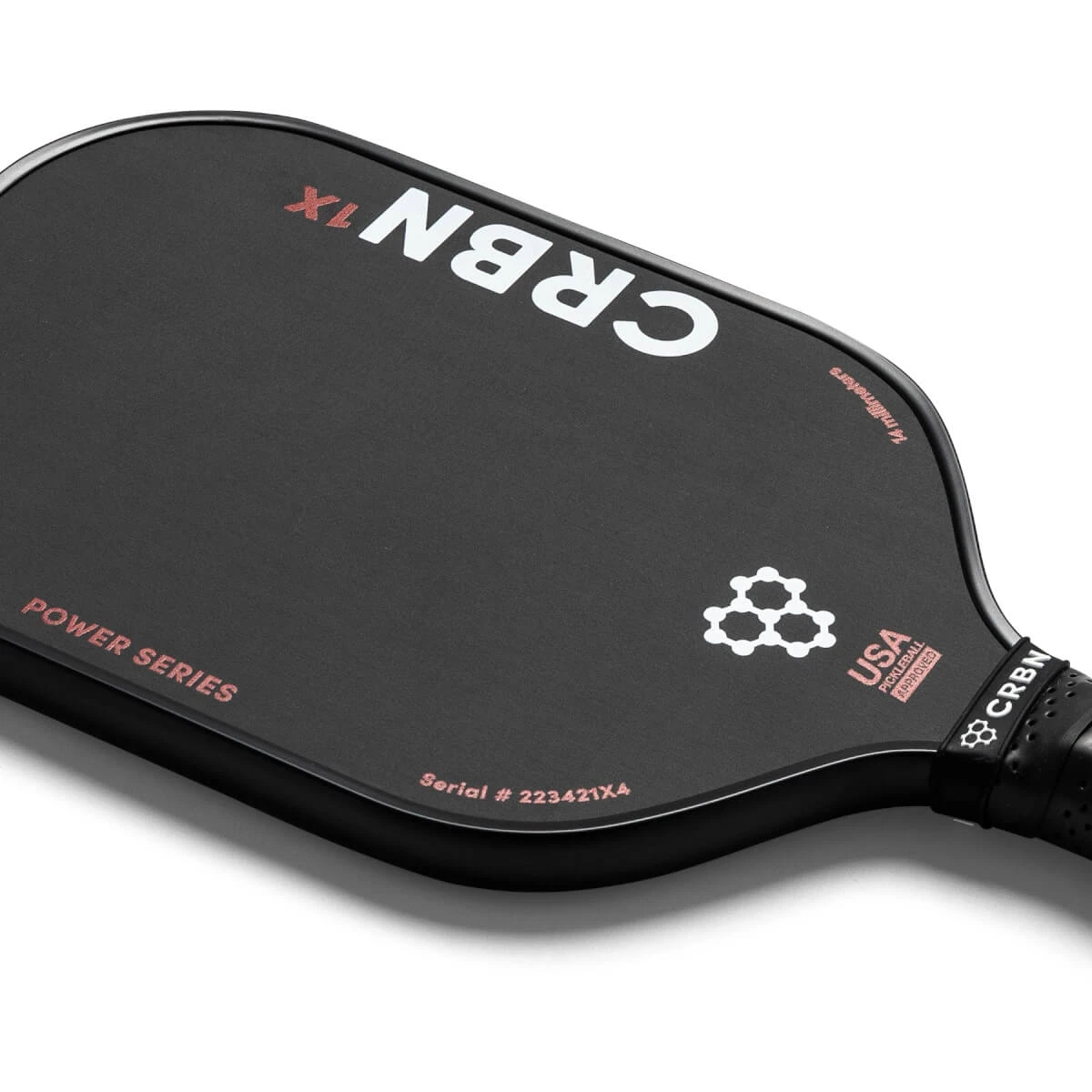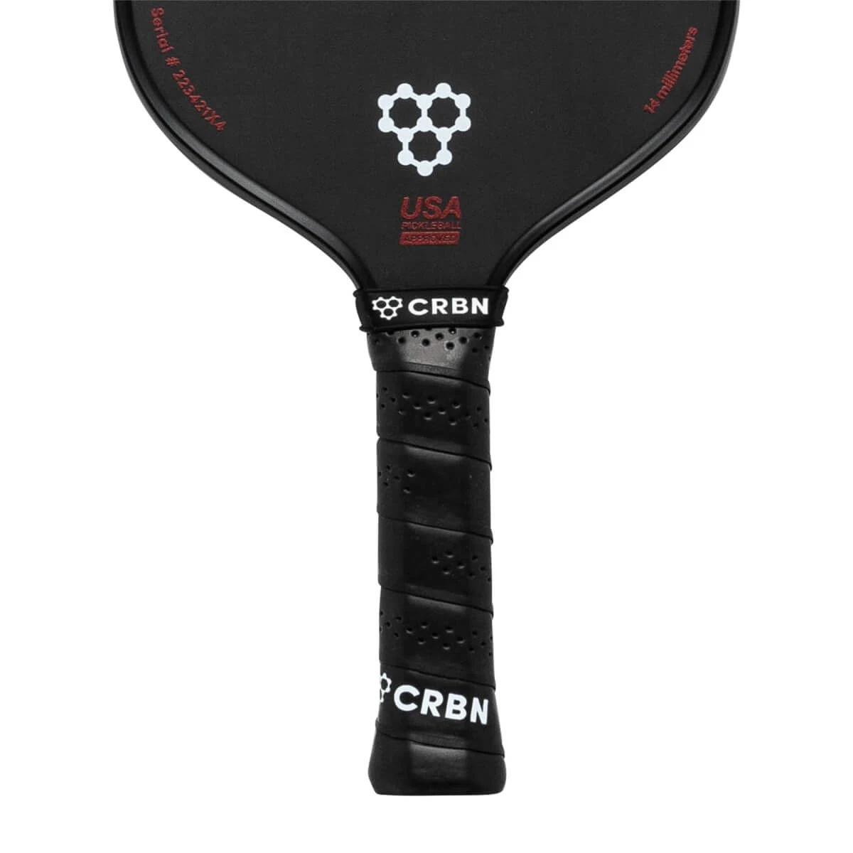 The ultimate weapon of choice for elite pickleball players, the CRBN¹ X 14MM Power Middleweight Carbon Fiber Pickleball Paddle has arrived! The same sleek carbon fiber design you are used to seeing with CRBN, now with devasting power. The CRBN Power Series is a premium performance power pickleball paddle with foam-injected walls to add stability and enhance the sweet spot, eliminating mishits. A unibody carbon reinforced throughout the handle, stiffening the handle and making the paddle more responsive, eliminating vibration, increasing durability, and adding an ergonomic grip. The aggressive balance of touch, power, and durability is unmatched in the carbon fiber category, promising unbeatable performance. Dominate the competition and elevate your game with the CRBN Pickleball Power Series. Experience the power of CRBN. All USAP Approved CRBN paddles will feature a unique serial number.
