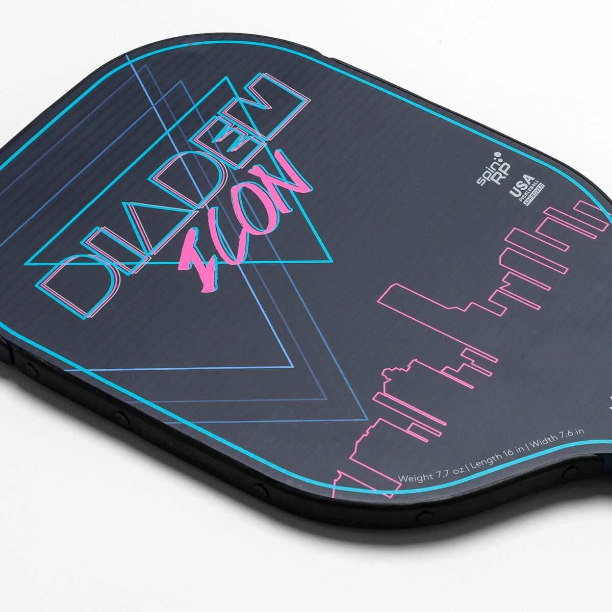 The Diadem Icon Lightweight pickleball paddle was designed to take the game of pickleball to the next level. It utilizes high-grade Japanese sourced carbon fiber on the paddle face and it is the perfect blend of stiffness and comfort for a soft but powerful feel. In the core the 8mm PP honeycomb allows you to play comfortably from the baseline with easy power. Spin RP is Diadem’s proprietary two-component polyurethane coating that allows the Icon to be the most spin-friendly USAPA approved paddle on the market. Perfectly balanced and beautifully designed with a sleek edge guard and high-end graphics. The Icon is the next generation of pickleball paddles.