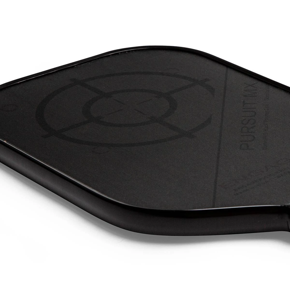 The Pursuit MX is the first graphite paddle released by Engage. The graphite face is developed specifically for the paddle to work with their black core, which is developed to be the softest core on the market. The graphite face features a rough texture that is built to last since it is a part of the paddle face/skin and not an overlaying texture. The graphite face is designed to increase friction and allow the ball to stay on the paddle longer. The combination of the black core and the graphite face give this paddle unmatched control, spin, and feel.