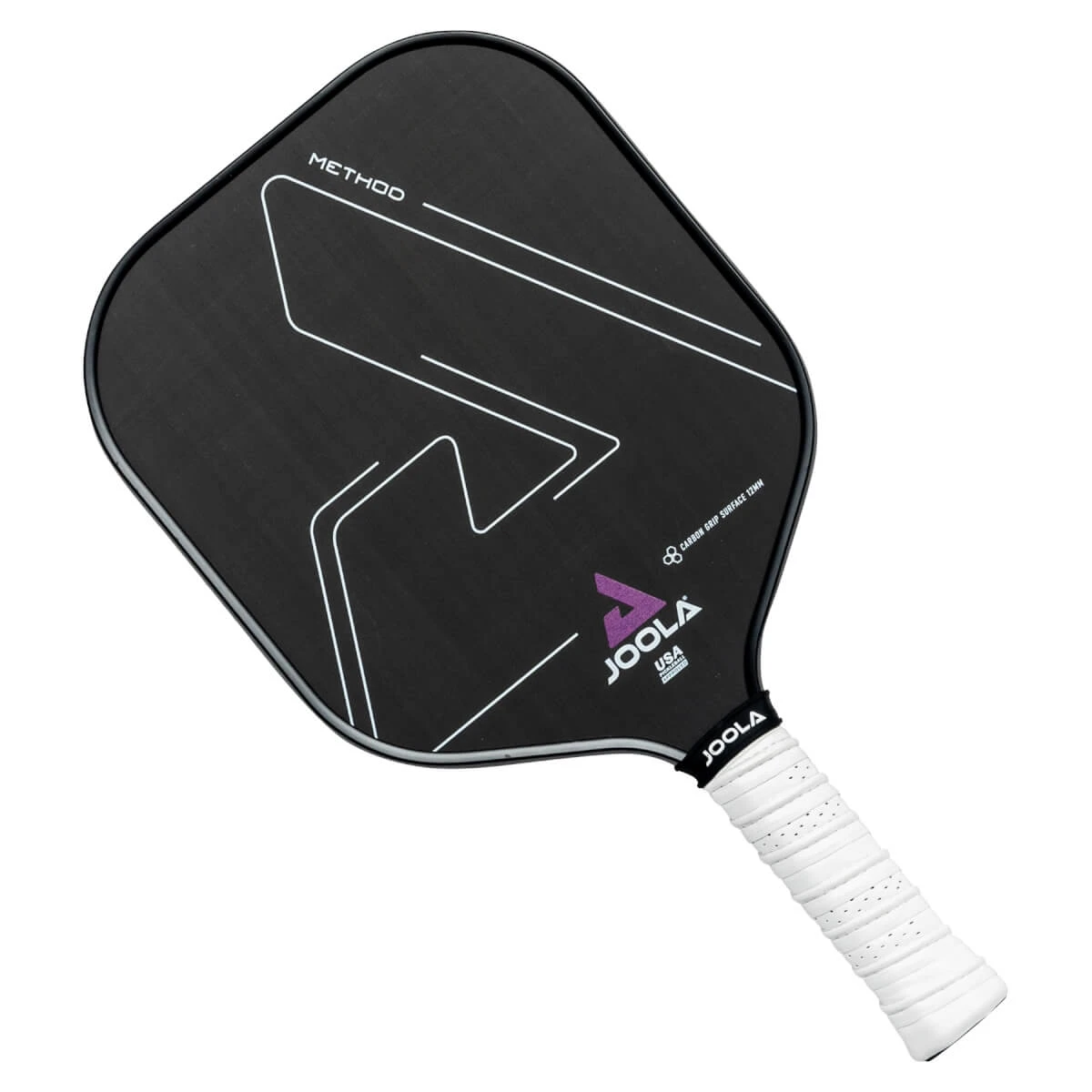 Take the performance to your court, with the JOOLA Method CGS 12mm Middleweight Carbon Fiber Pickleball Paddle. A wide body at 8 2/5” pickleball paddle with a 12 mm Response Polymer core for increased control and reduce vibration, this paddle from backline to kitchen line provides for an increased spin and power. The Carbon Grip Surface technology utilizes a durable, long-lasting carbon-Flex 3 textured surface that grips the ball to create more spin on each shot. A Thin Grip at 4” gives a player mobility and reach with a long handle at 5 1/2”. Take your game to the next level with the JOOLA Method CGS 12mm Middleweight Carbon Fiber Pickleball Paddle!