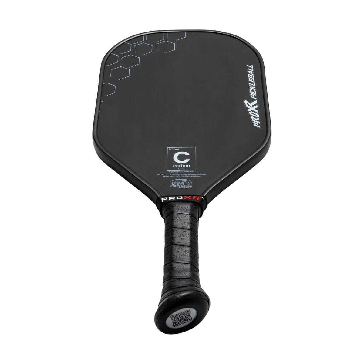 14 mm core to add power to your game. A larger sweet spot compared to the 11 mm core, giving you the best of both. Founded in bio-mechanical science and proven in major sports, the ergonomic 23° handle design provides an unmatched connection from player to paddle. From serves to dinks, players immediately notice how effortlessly an XR-23 handle empowers quick execution on any shot. Experience a powerful, controlled response from our gritty T700 Raw Carbon face that delivers unmatched spin during play. ProXR Pickleball paddles feature an optimized HEXA core, specifically engineered and constructed to provide precise shot consistency, demanded by the best of the best.