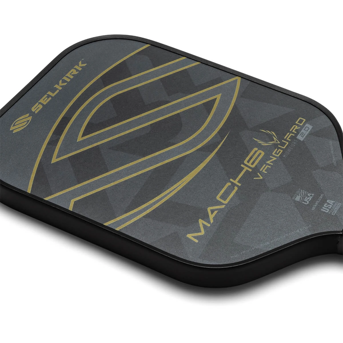 Embrace innovation with the Selkirk VANGUARD 2.0 Mach6 Middleweight Carbon Fiber Pickleball Paddle! Professional level paddle with professional innovation. Selkirk strives to be the leader in pickleball paddle design, construction, and innovation and the Vanguard 2.0 delivers! Vanguard 2.0 will have updated Quantum- Carbon Fiber utilized by leaders in the spacecraft industry giving players cat-like speed and consistent feel throughout the face of the paddle. Engineered with Pro-Spin Texture for world-class performance providing players with more spin than ever before. Added with the Gen2 Durable Surface, the VANGUARD 2.0 offers more wear resistance than ever before. Innovation design for the player with the Selkirk VANGUARD 2.0 Mach6 Middleweight Carbon Fiber Pickleball Paddle.