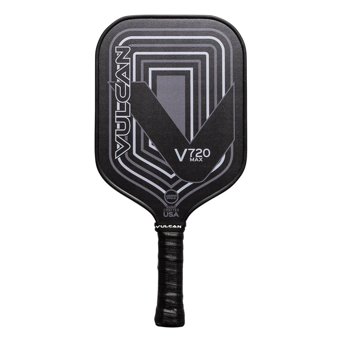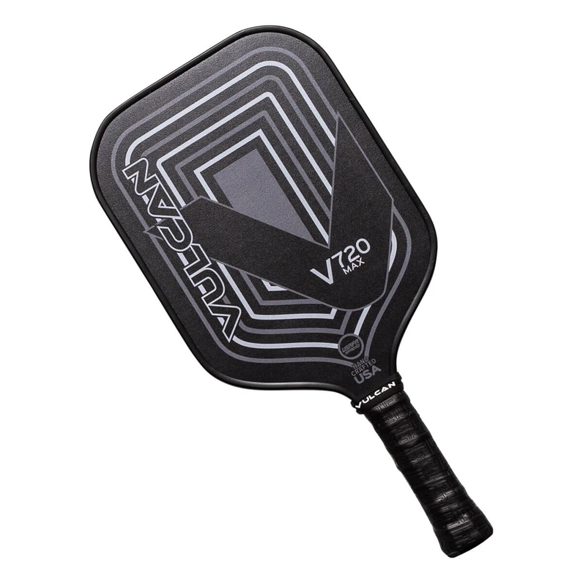 The Vulcan V720MAX Pickleball Paddle Heavyweight Carbon Fiber Pickleball Paddle is a power paddle designed for players who hit drives and smashes with maximum pace and depth! With its larger surface area and sweet spot, it is also one of the most forgiving paddles around the net. Excellent for both doubles and singles! Engineered with remarkable balance so it feels and plays much lighter than its actual mass. Vulcan Max Control Grip at 5”. Made to a popular weight of 8.4 oz. (+/- 0.2). Handcrafted in the USA!